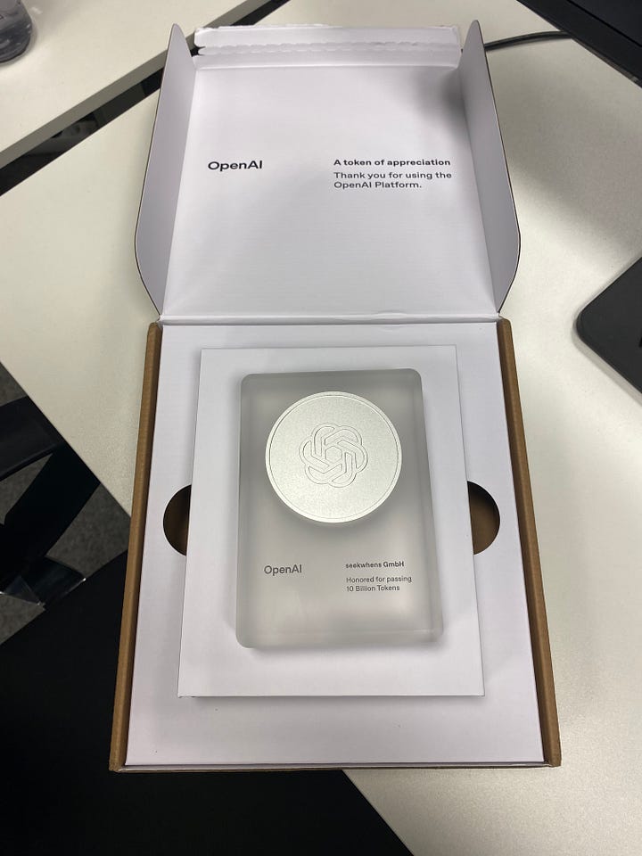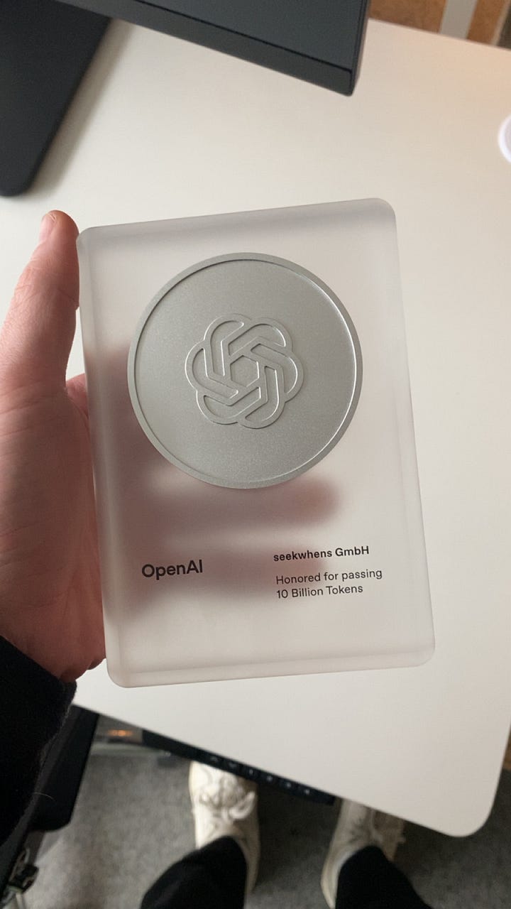 Oh, and we hit 10 billion tokens on OpenAI’s API. They sent us this clean little trophy. Feels good to see the usage grow like that. Expensive trophy though, but worth it.